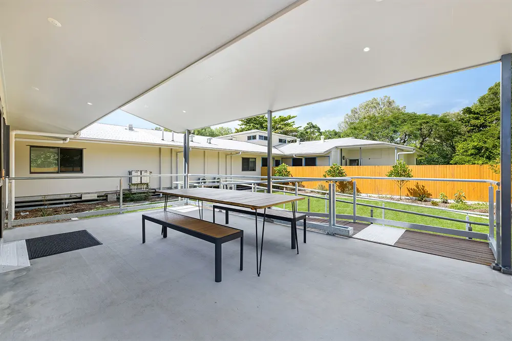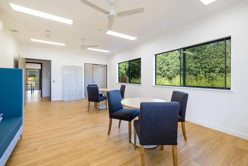 The build required the design and construction of a new reception, meeting rooms, staff amenities and kitchen, laundry, dormitories, and associated facilities, including outdoor communal areas, access ramps and carpark up grades.