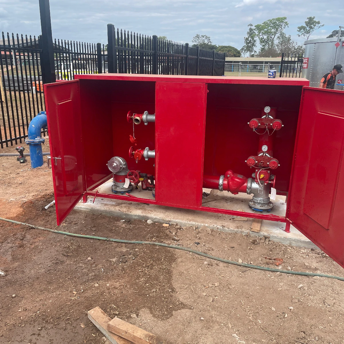 Outcomes: The project was successfully completed with minimal disruption aligning works to the school holiday period were works were likely to interact with students and staff. The new Hydrant and systems were tested and met the current Australian Standards and DoE design criteria. Final works are underway for the DoE compliant fencing, building and hydrant commissioning and tested has been conducted and all works deemed compliant.